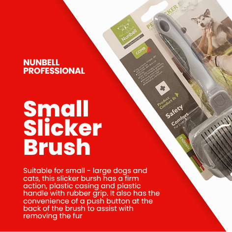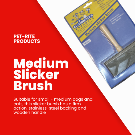 Slicker brushes feature fine and short wires positioned closely together. They are designed for use on medium-to-long-haired or curly-haired dogs to effectively remove mats. There are a range of slicker brushes are available on the market so talk to us if you are not sure which brush to choose!