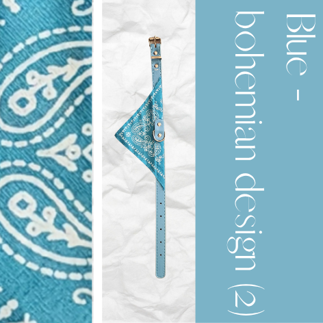 These cute leather-like collars come in different sizes and colours. Each have little bandanas sewn on to them with a silver buckle for fastening and silver D ring for tag and leash attachment.
