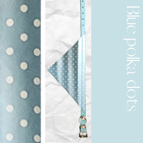 These cute leather-like collars come in different sizes and colours. Each have little bandanas sewn on to them with a silver buckle for fastening and silver D ring for tag and leash attachment.