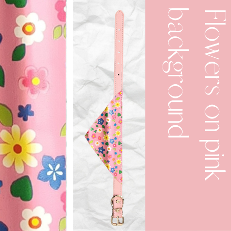 These cute leather-like collars come in different sizes and colours. Each have little bandanas sewn on to them with a silver buckle for fastening and silver D ring for tag and leash attachment.