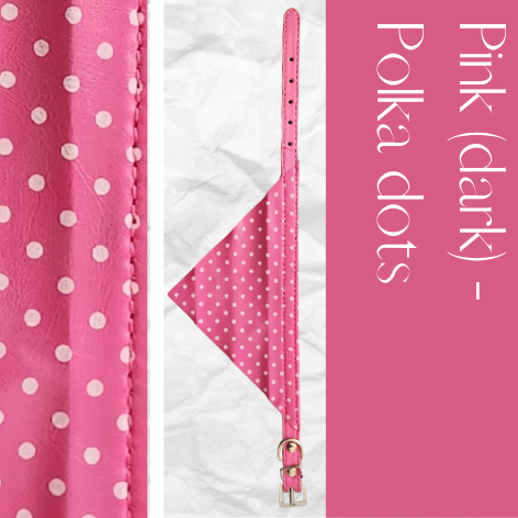 These cute leather-like collars come in different sizes and colours. Each have little bandanas sewn on to them with a silver buckle for fastening and silver D ring for tag and leash attachment.